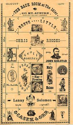 Idler Schedule 8/76 - Among others performers, Geoff Bartley, Ric Ocasek & Ben Orr (of The Cars), Peter C. Johnson and Lenny.