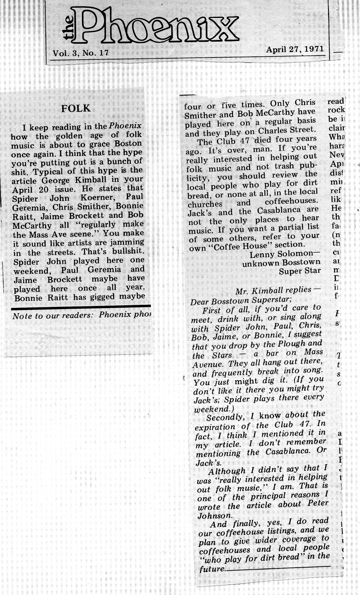 Coffeehouse, Cambridge MA 1973. The Idler was a favorite performing spot for